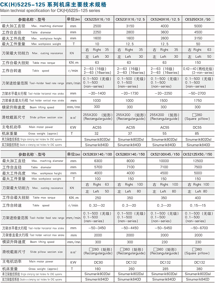 CK(H)5225-125系列数控双柱立式车床