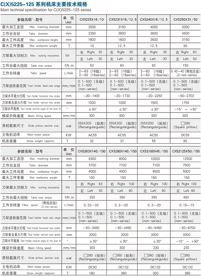 C(X)5225-125系列普通(数显)双柱立式车床
